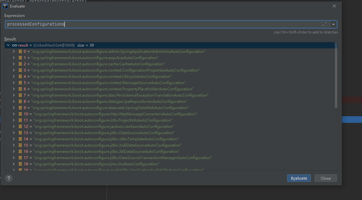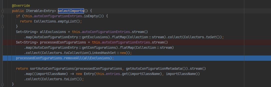 这个processedConfiguration里面就拿到了spring.factories里面定义的自动装配类