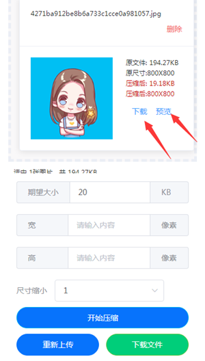 3、压缩完成后点击预览,无误后点击保存图片下载。