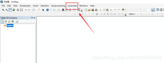 编写好程序后,现在我就是将编写好的addin放到arcgis里面去调试了,选择【Customize】