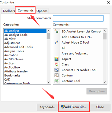 然后选择【Customize Mode】,弹出如下框。依次选择【Commands】、【Add From File..】