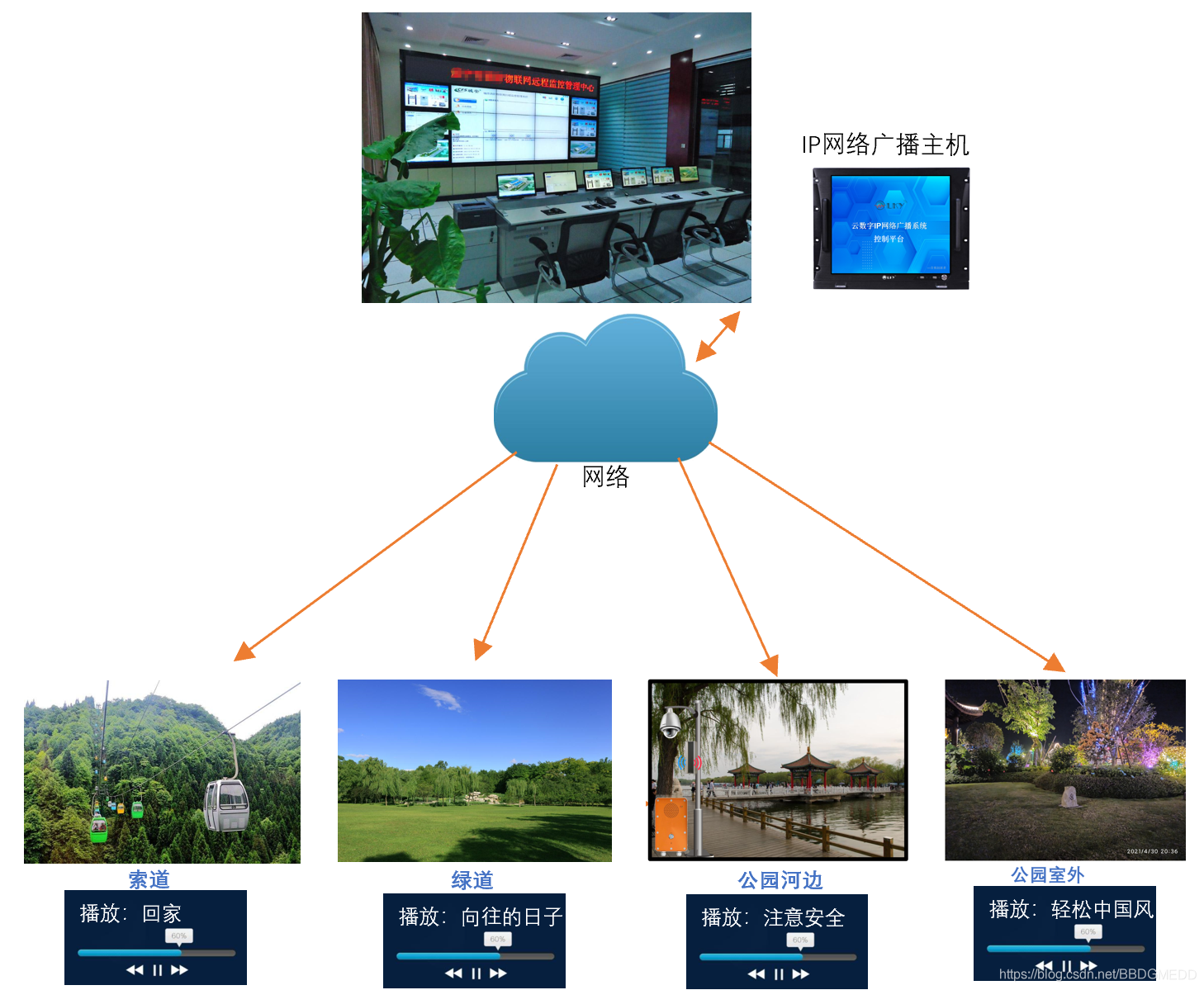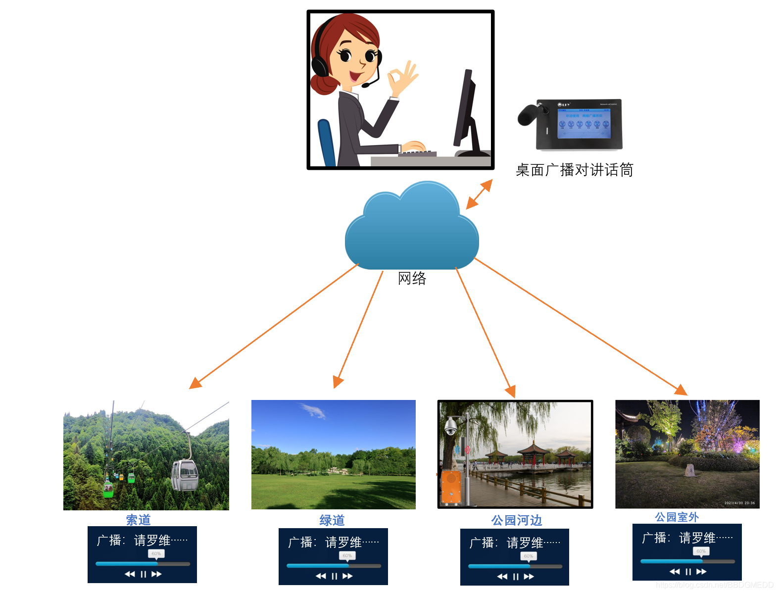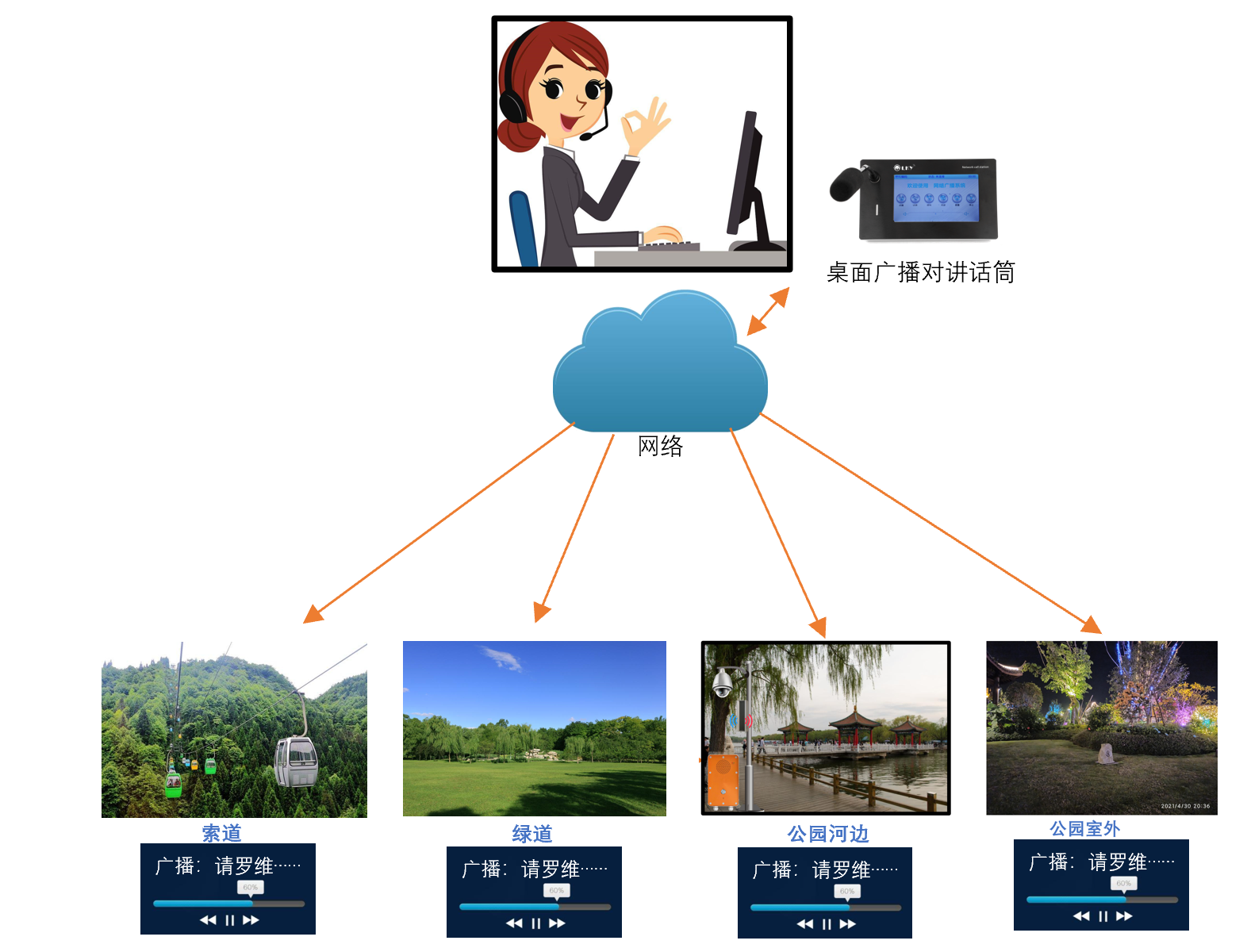 公共广播功能:根据景区的需要,可以实现对景区的整体广播。