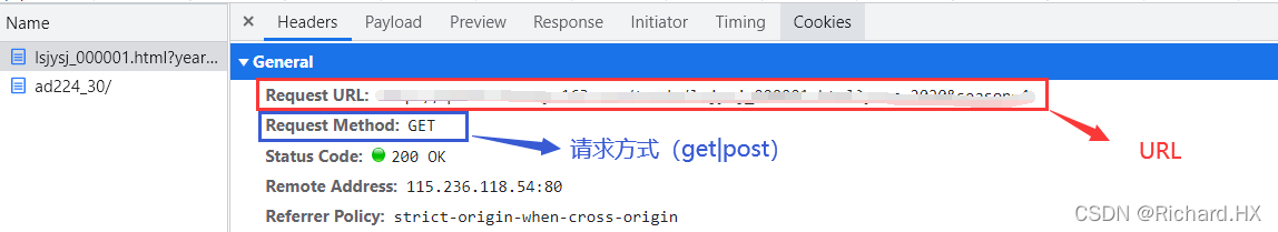 请求方式:一般是post和get两种,我这里主要是get请求(post请求后续会给大家讲解),get请求一般比较简单。