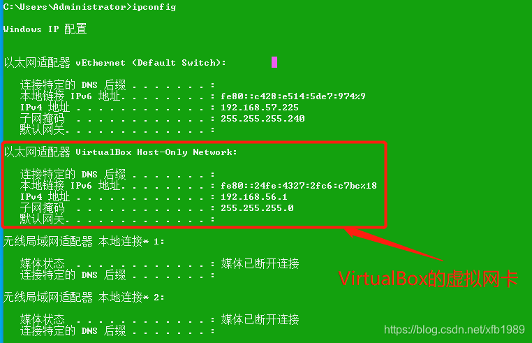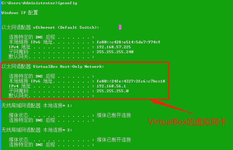 查看vitualbox的虚拟网卡的ip