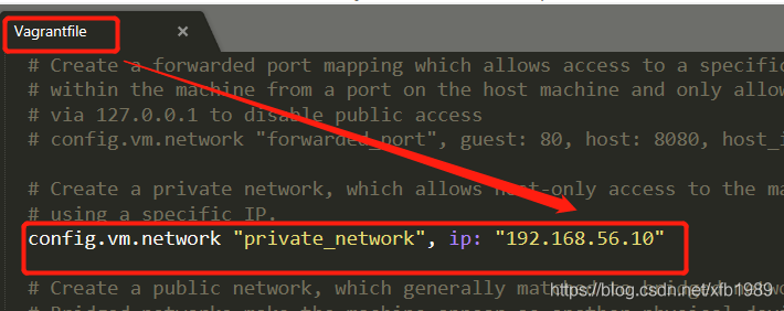 编辑vagrant的配置文件, 设置虚拟机的静态IP, 同一个网段的任意IP