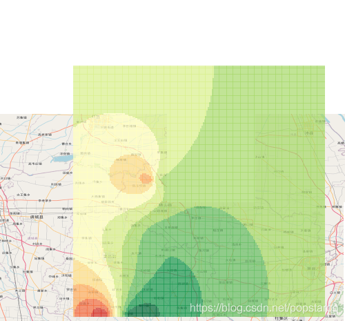 kriging.plot(canvas,grid,xlim,ylim,colors);将得到的格网grid渲染至canvas上。