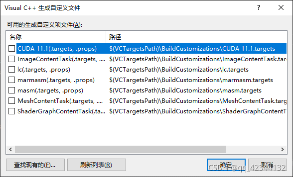 1.没有CUDA,生成依赖项-生成自定义文件里也没有CUDA11.1的选项