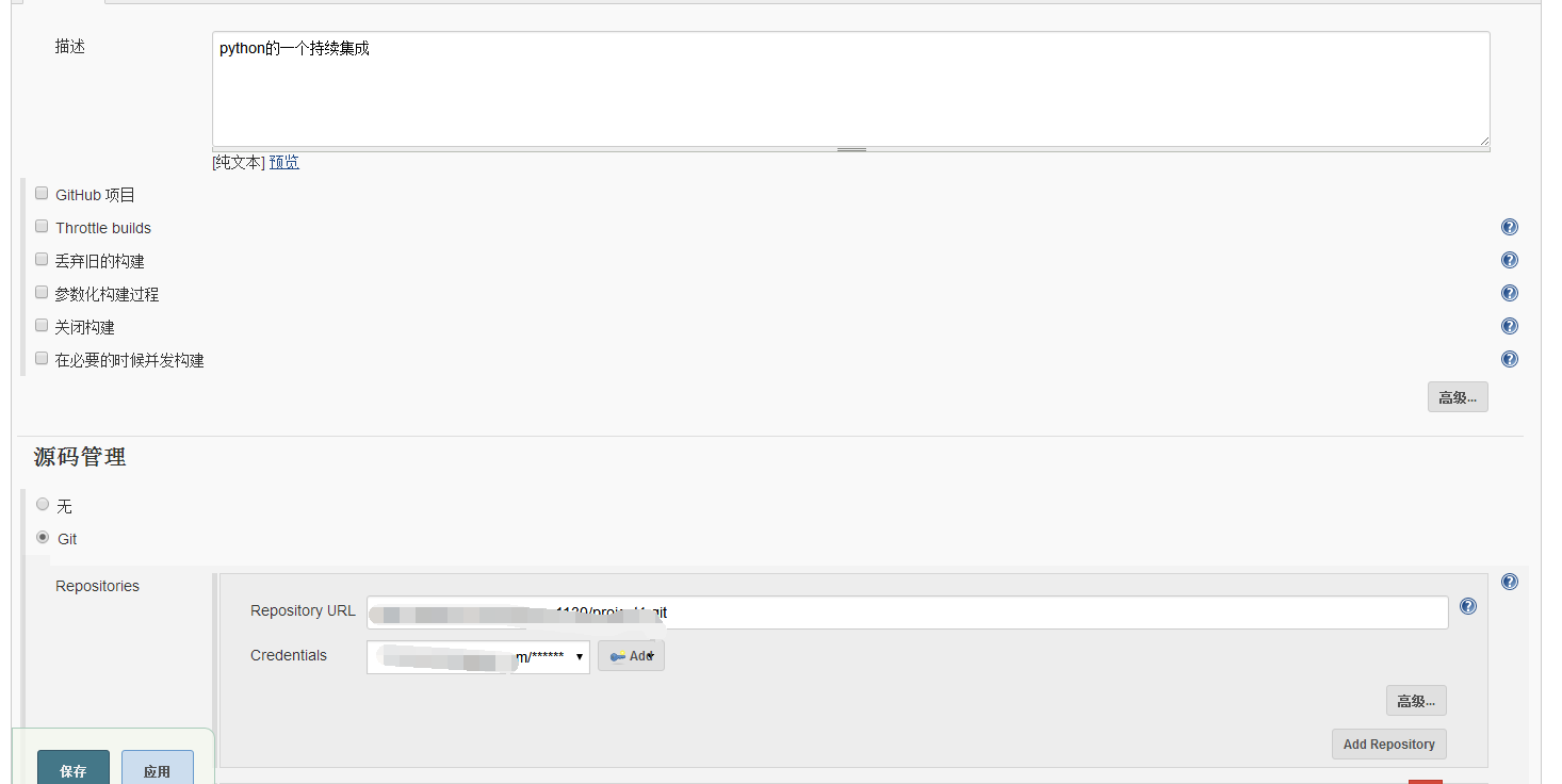 若项目为github项目,选择git,点击add需要git的用户名和密码,保存