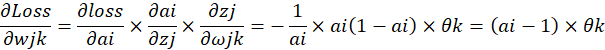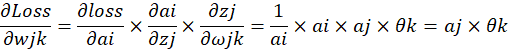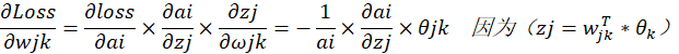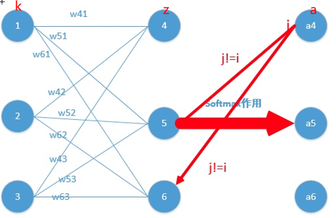 (ii)对其他分类节点求导, i≠j时即a的下标不等于z的下标时: