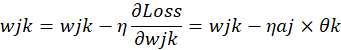 进一步可以接着求,隐藏层节点到输出层节点的权值偏导: