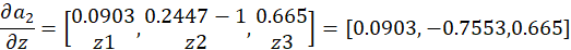 如果真实情况下,第二种分类是正确的,那么softmax激活函数作用后的输出对输出向量的偏导数为