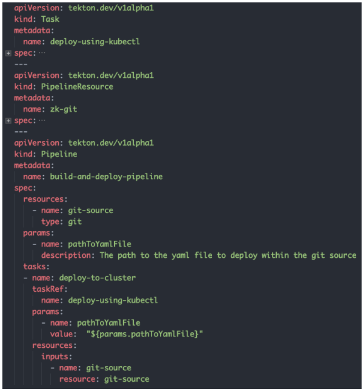 这个例子里面我们生成了一个 Tekton Pipeline。运行这个 pipeline 就可以将应用发布到 K8s 集群上。