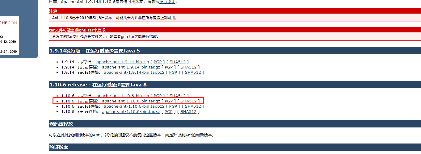 本次下载版本为:apache-ant-1.10.6-bin.tar.gz