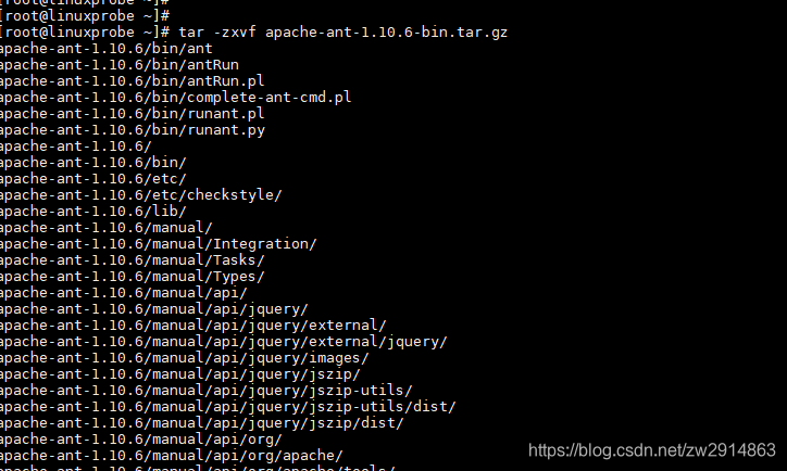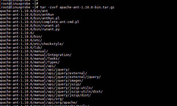 解压文件执行:tar -zxvf apache-ant-1.10.6-bin.tar.gz
