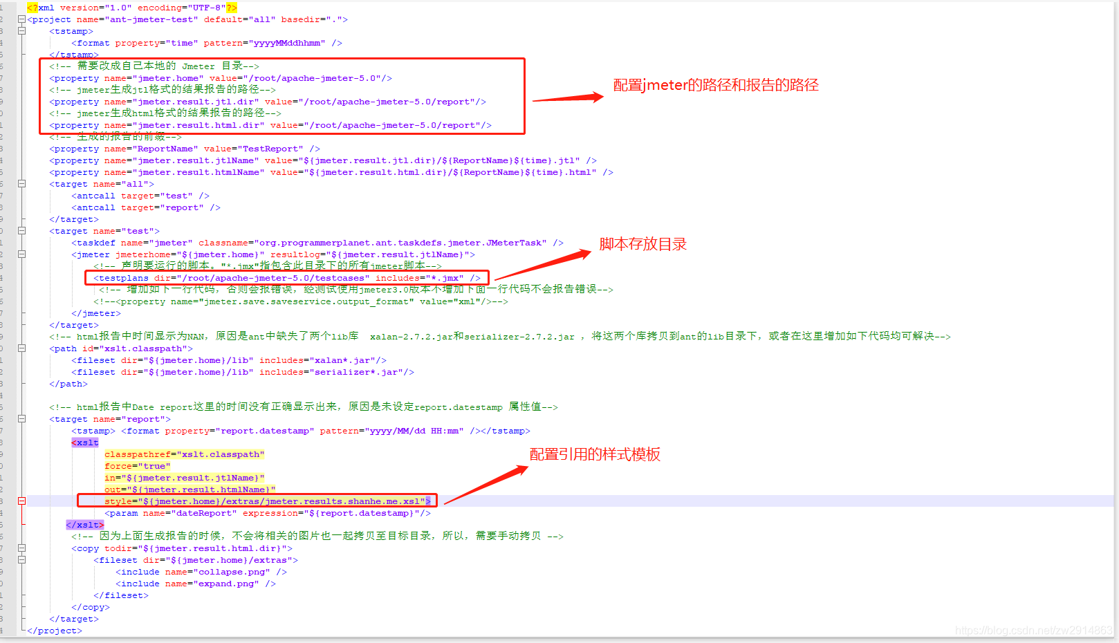 <!-- html报告中时间显示为NAN,原因是ant中缺失了两个lib库 xalan-2.7.2.jar和serializer-2.7.2.jar ,将这两个库拷贝到ant的lib目录下,或者在这里增加如下代码均可解决-->