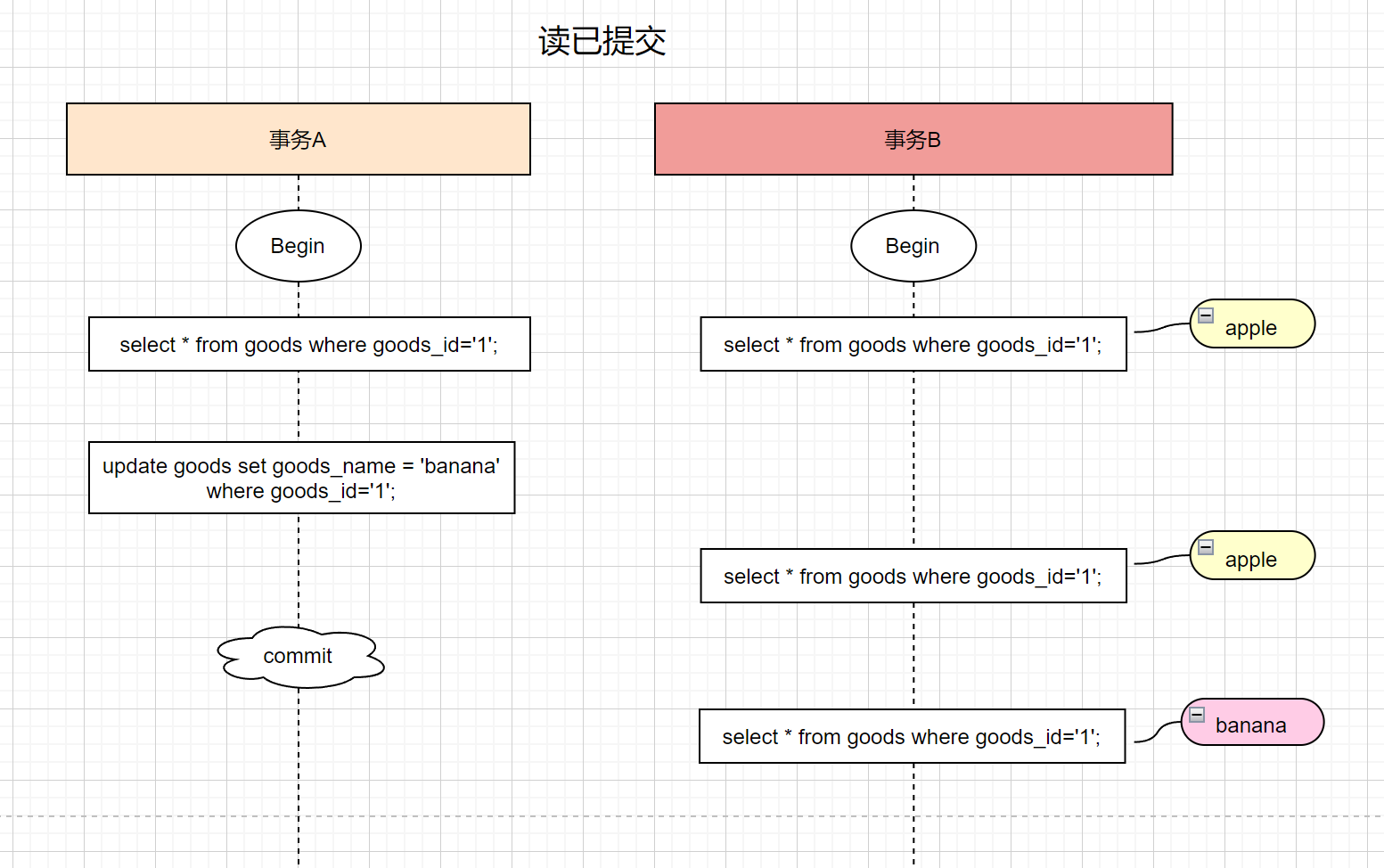 上面B产生了脏读,要想解决脏读这个问题可以采用读已提交的隔离级别