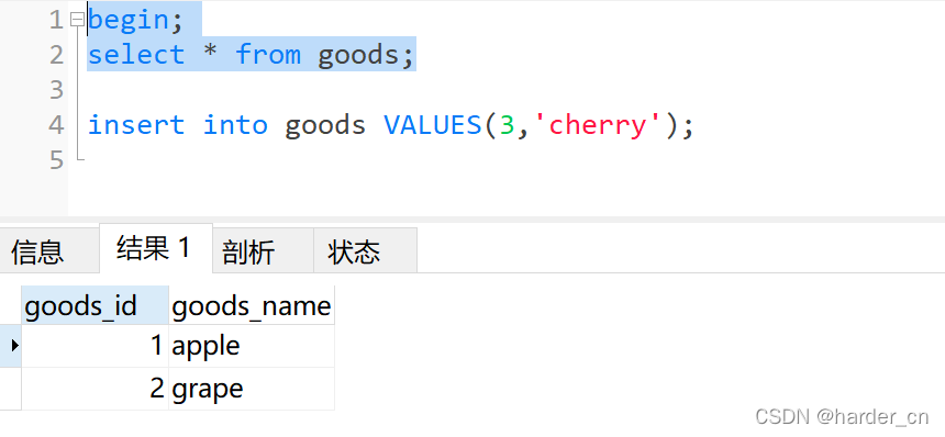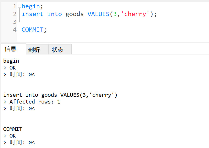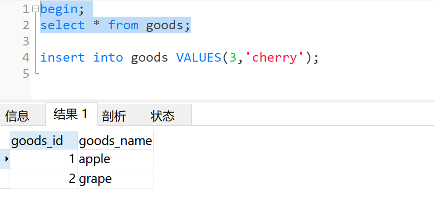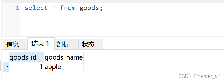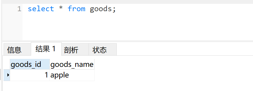 ) ENGINE = InnoDB AUTO_INCREMENT = 34 CHARACTER SET = utf8 COLLATE = utf8_general_ci ROW_FORMAT = Dynamic;默认表中有一条数据