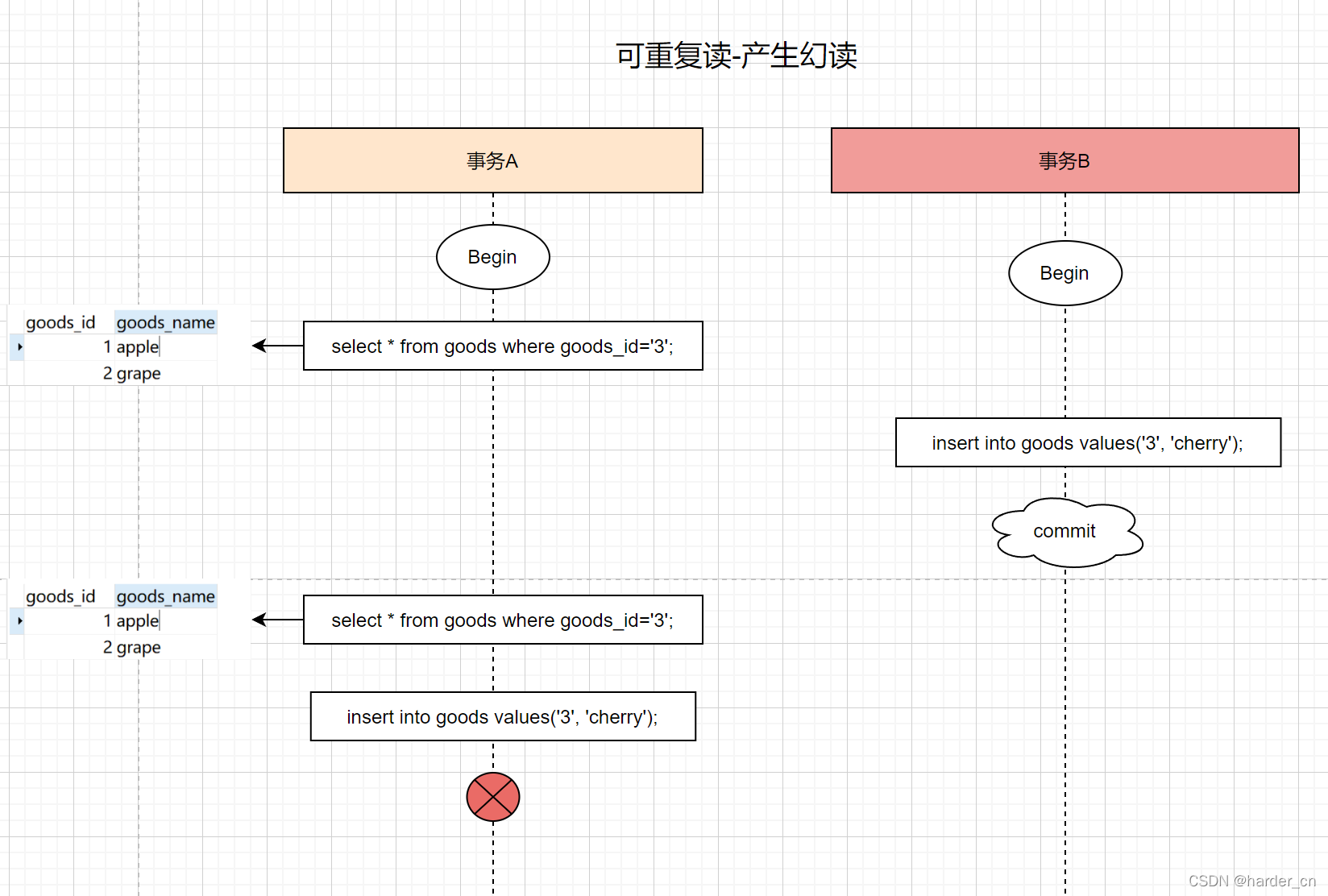 此时就产生了幻读,A事务本身查询看不到主键=3的数据,但插入时却仍报主键冲突。