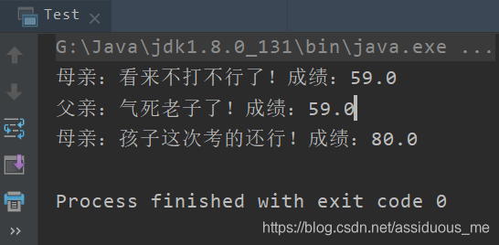 System.out.println("父亲:气死老子了!成绩:" + score);