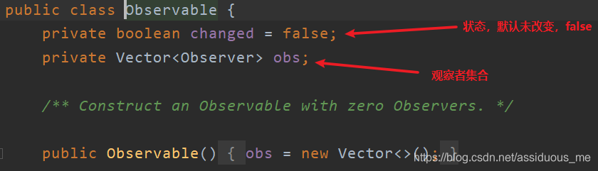 而且细心的读者能看到 clearChanged(); 这个方法是当 changed 为 true 的时候,在将 changed 赋值为 false,这下明白了吧,如果要进行通知其他的观察者时,首先要调用 setChanged(); 方法,改变父类的 changed 状态为 true