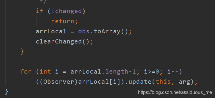 通知其他观察者前要检查 changed 状态,如果为 true 则接着下面的代码走,进行通知,如果为 false 就直接返回!