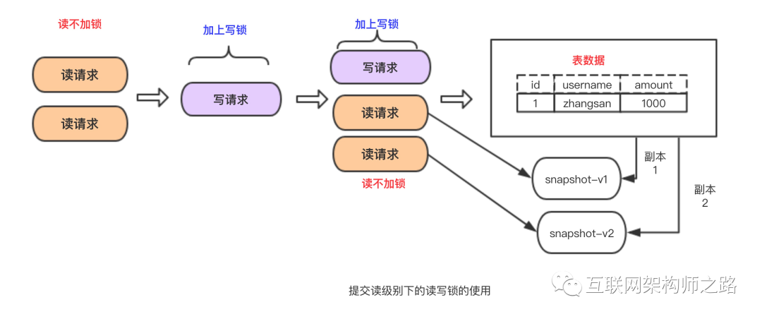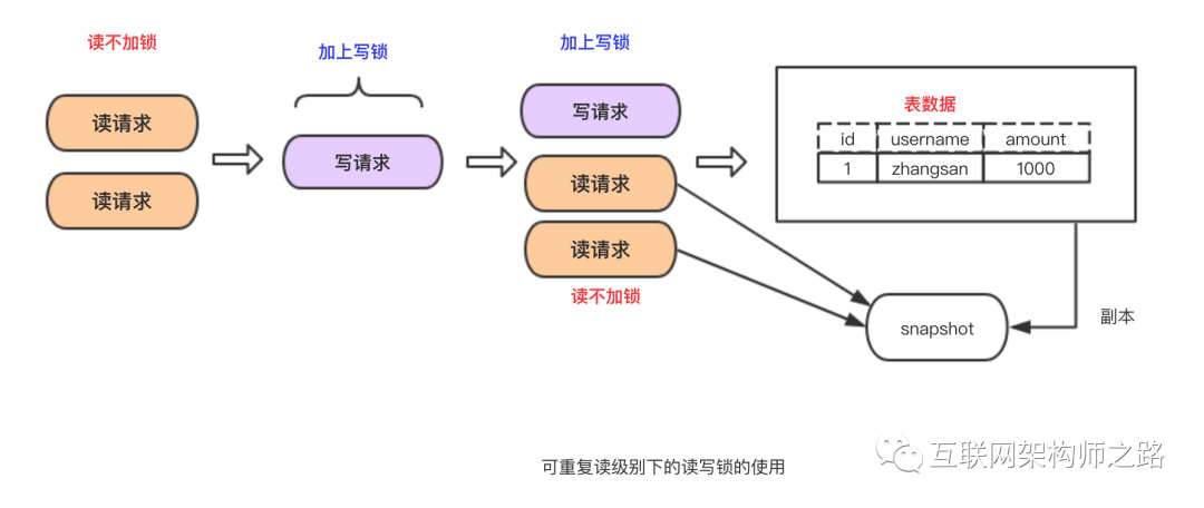 mysql有两种机制可以达到(可重复读)这种隔离级别的效果,分别是采用读写锁以及MVCC。