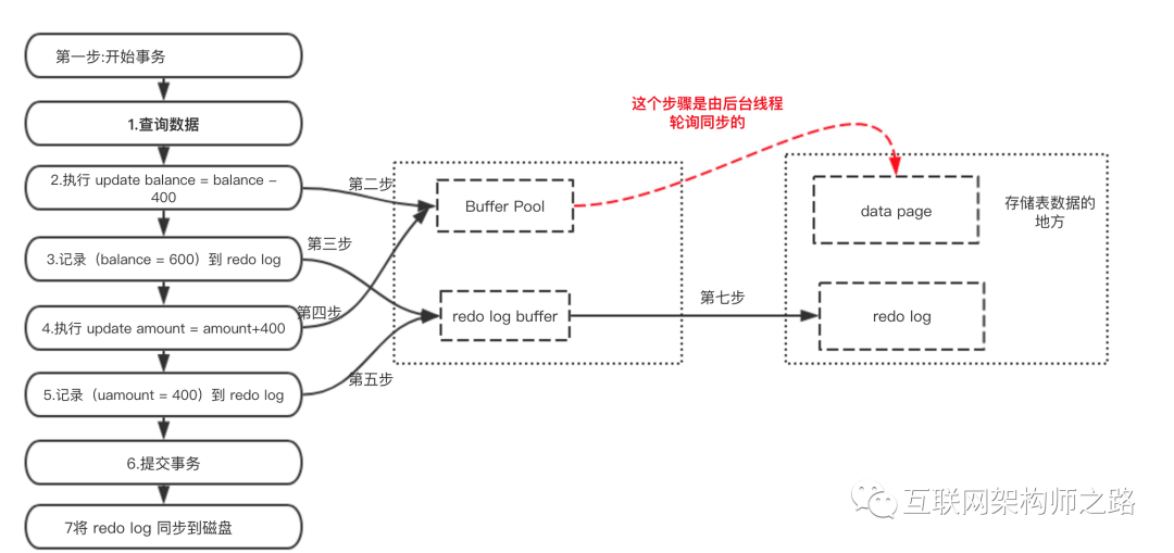 (2)缓存同步是以数据页为单位的,每次传输的数据大小大于redo log。