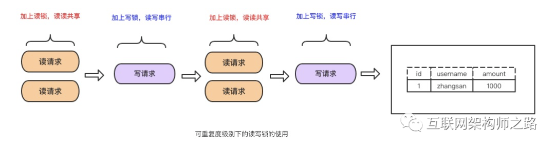 读锁是可以共享的,或者说多个读请求可以共享一把锁读数据,不会造成阻塞。