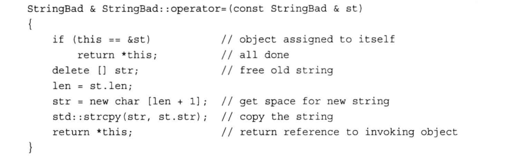 C++允许类对象赋值,这是通过自动为类重载赋值运算符实现的,下面是想要改变时的语法