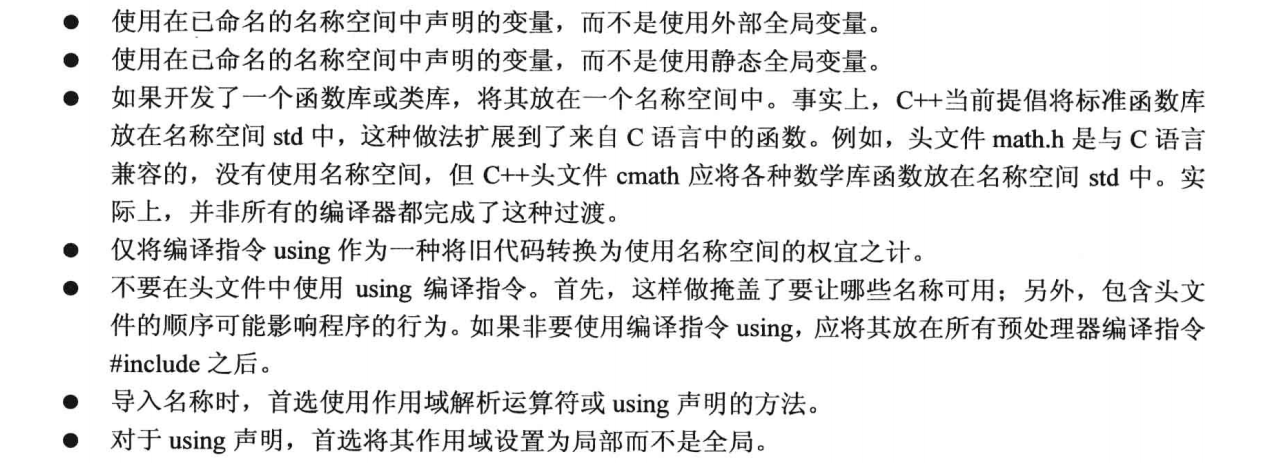 类、函数和变量便是c++编译器的标准组件,它们现在都放置在名称空间std中。这意味着cout输出函数实际上是std::cout,因此可以直接用std::cout<<"不使用using namespace std;";
