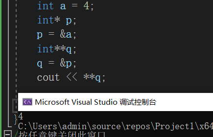 *p = 4; //这个4本文统一称为指针指向变量的值(在别的地方称为指针指向的值)