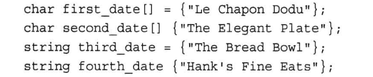 - 复合类型(数组、字符串、指针和结构)(在基本类型上创建的复合类型)
