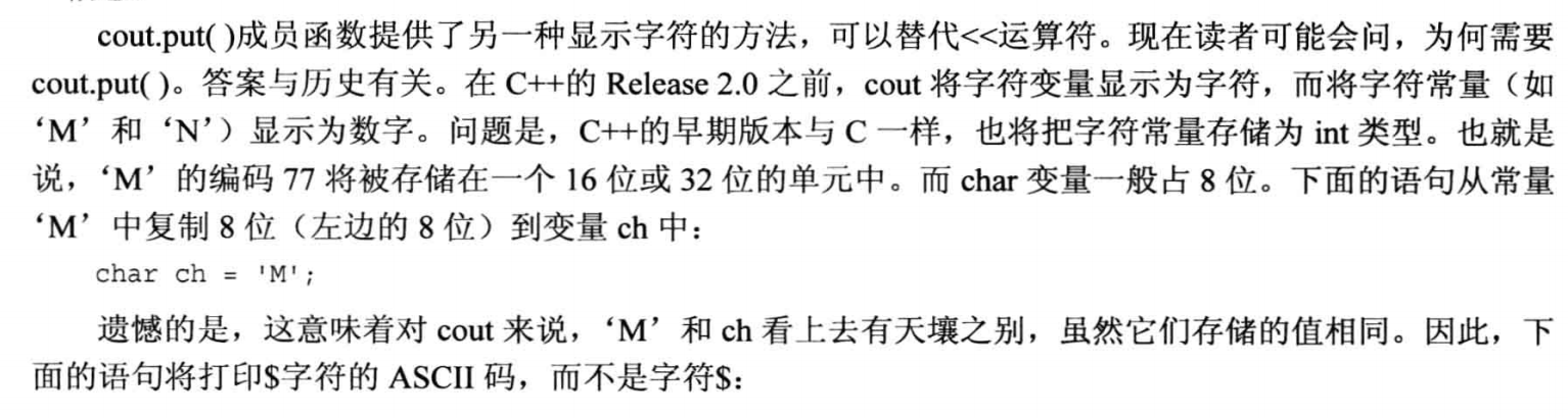 但是c++早期版本,将字符常量存储为int类型,因此‘M’的编码77会被存储在16位或者32位的单元里,但是char变量一般占8位