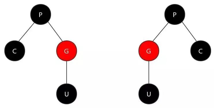 图例:C 表示当前节点,P 表示父节点,U 表示叔节点,G 表示祖父节点