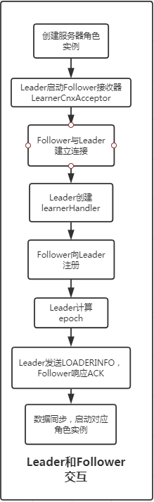 当选举出Leader机器以后,其他的机器则会开始与Leader进行交互,进行数据同步等操作,此阶段的流程大致如下: