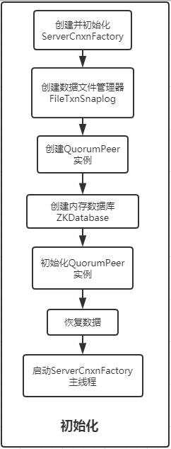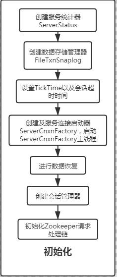 初始化阶段,则是开始将Zookeeper中的相关服务管理类进行创建,大体流程如下: