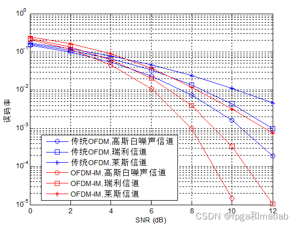 第二、系统误码率性能较高。和传统的OFDM系统相比而言,在相同信噪比条件下,OFDM-IM调制技术的误码率性能远远优于OFDM调制的误码率性能指标。
