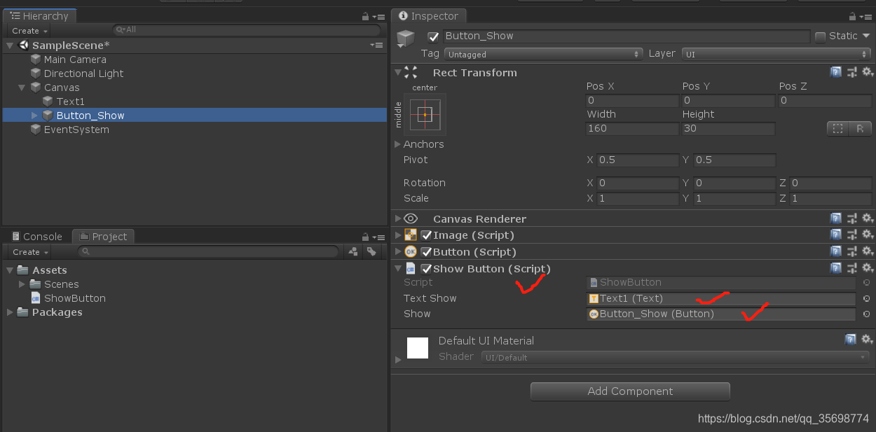 编写一个脚本:ShowButton.cs。并挂载在Button_Show控件上