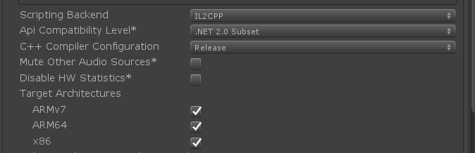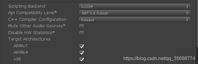如果不选择X86就不用Scriptiong Backend选择IL2CPP。