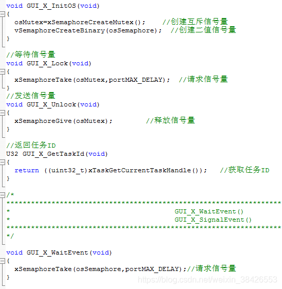 GUI_X_FreeRTOS 具体内容,看了这些大家也知道为什么必须移植修改这部分了吧: