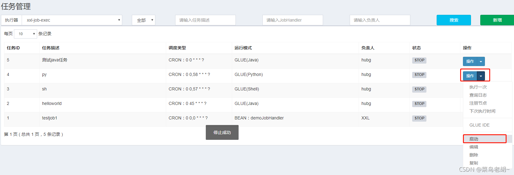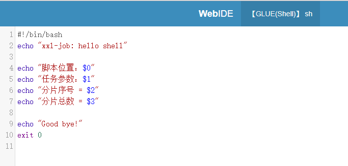 GLUE模式(Shell):任务以源码方式维护在调度中心;该模式的任务实际上是一段 "shell" 脚本;