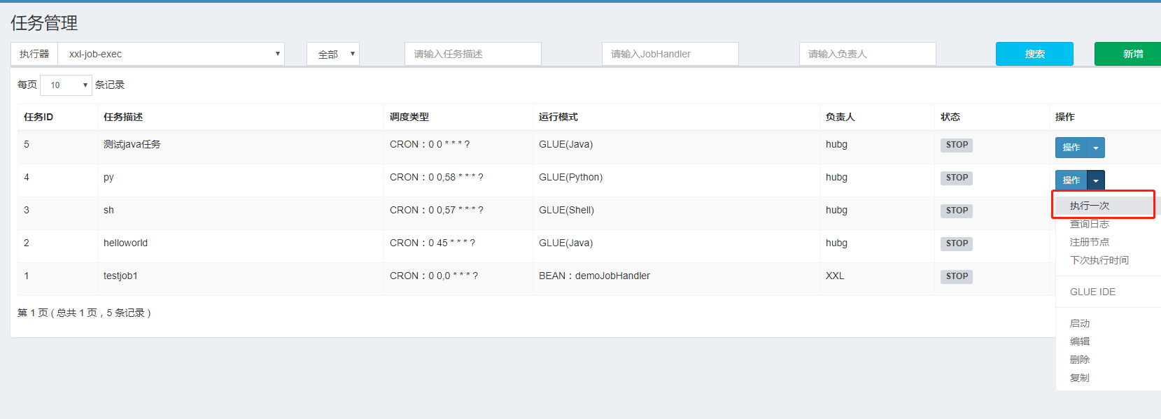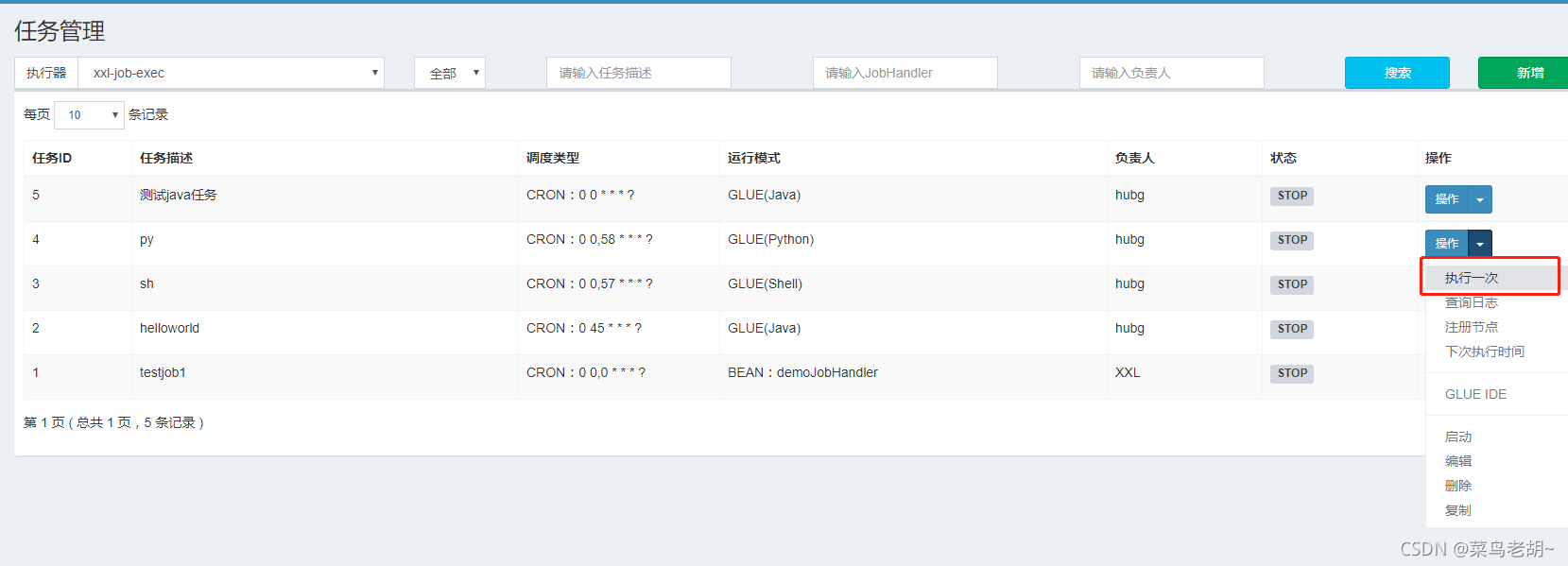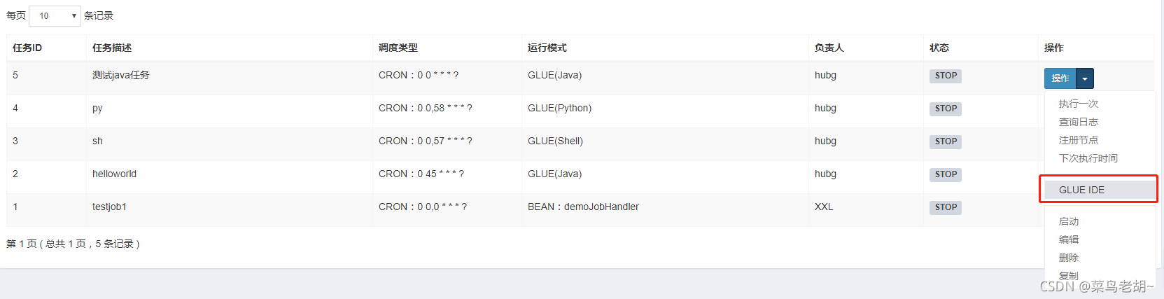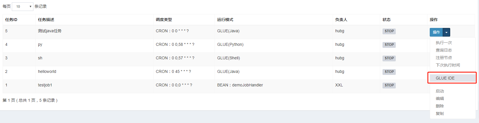 GLUE模式(NodeJS):任务以源码方式维护在调度中心;该模式的任务实际上是一段 "nodejs" 脚本;