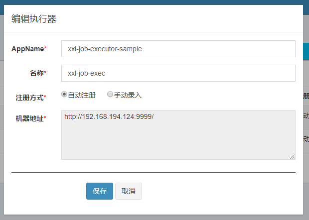 手动录入:人工手动录入执行器的地址信息,多地址逗号分隔,供调度中心使用;