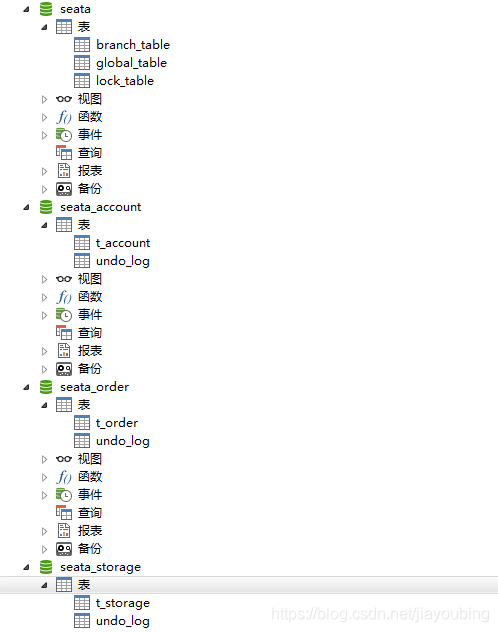 INSERT INTO `t_storage` VALUES (1, 1, 100, 0, 100);3.并在每个库中建立回滚日志表