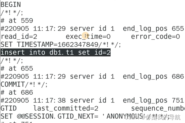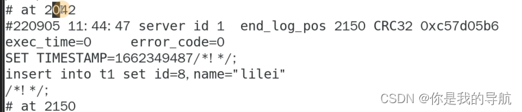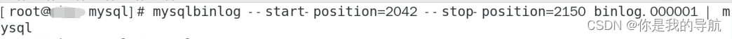 # mysqlbinlog mysql.000002 --start-position=260 --stop-position=930 开始的位置,结束的位置