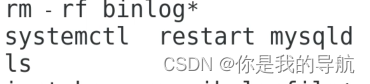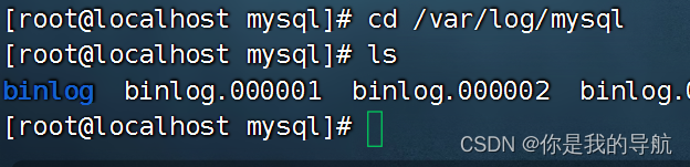 ls 多了一个binlog.000001文件,这个文件是刚才配置了二进制的配置,起了名叫binlog,但它给创建出来的是带了结尾的,以后在修改主配置文件的时候,不用主动的结尾。