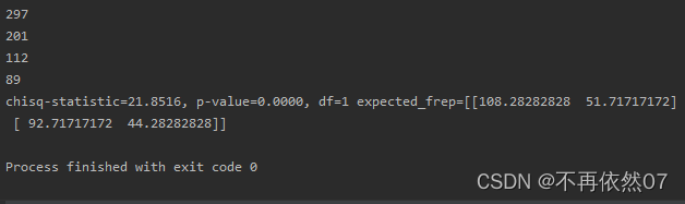 print('chisq-statistic=%.4f, p-value=%.4f, df=%i expected_frep=%s' % kf)