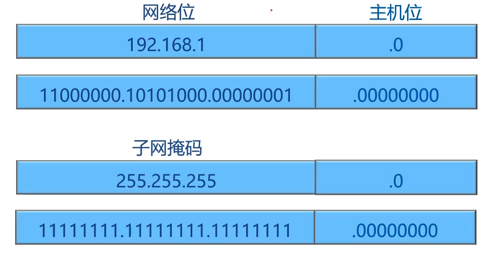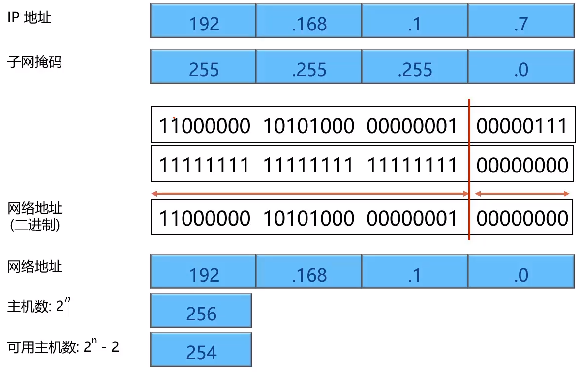 - 通过子网掩码和IP地址共同表示属于哪一个网段