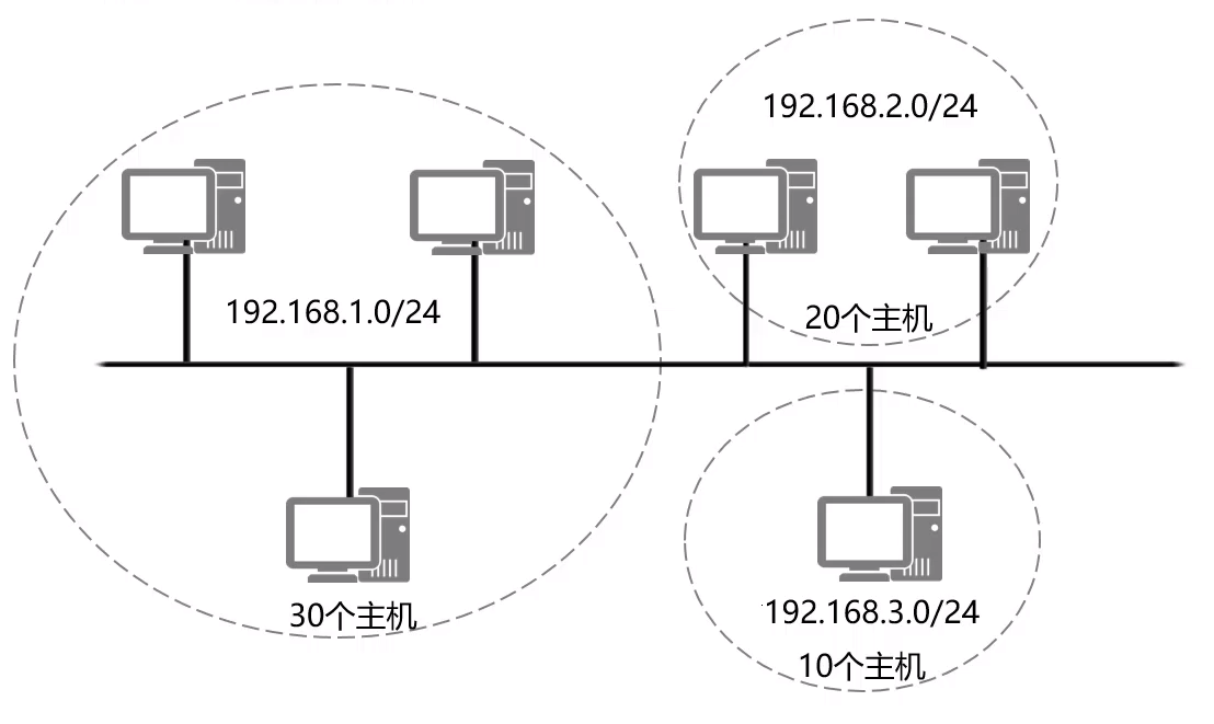- 现有一个C类网络地址段192.168.1.0/24,请使用变长子网掩码给三个子网分别分配IP地址