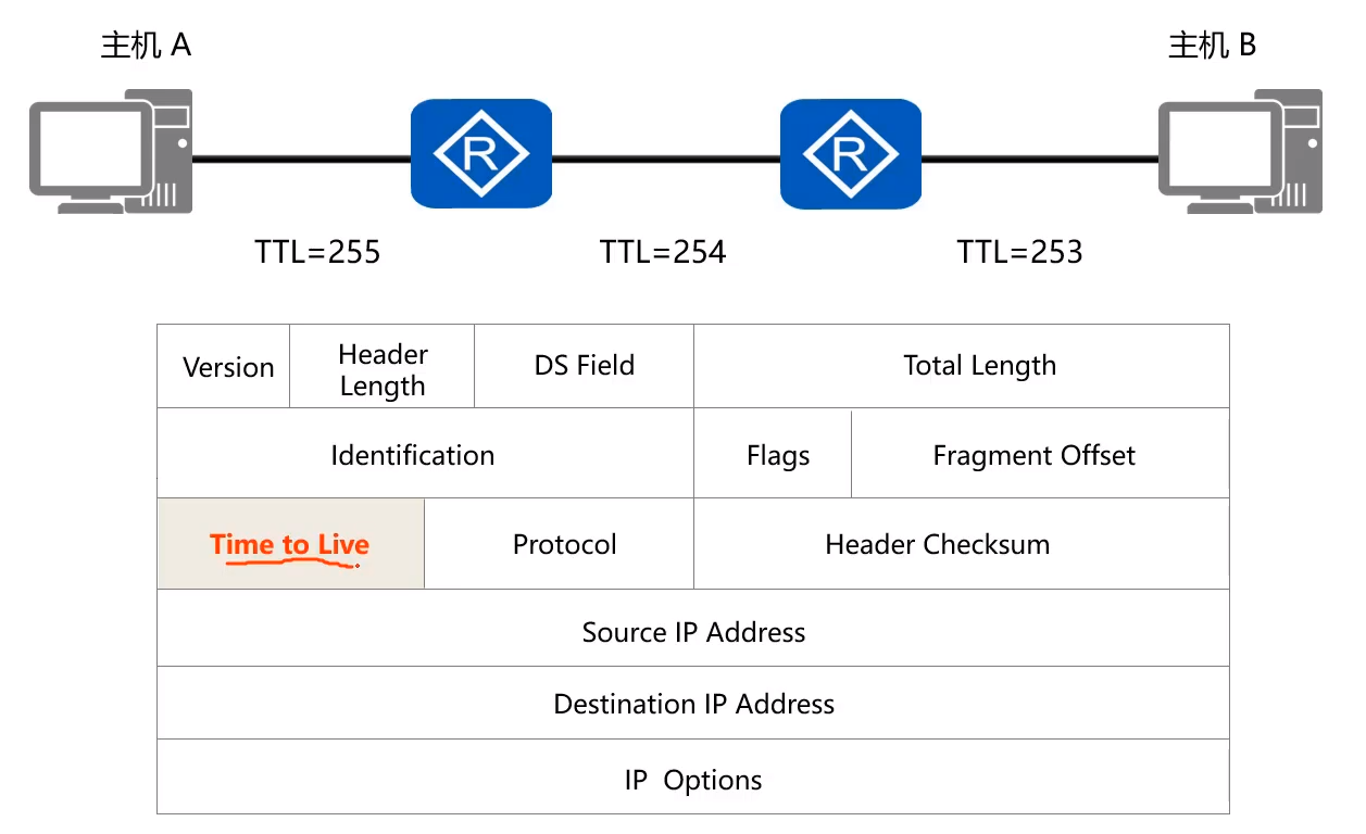 - 当TTL为0时,该报文就会被丢弃