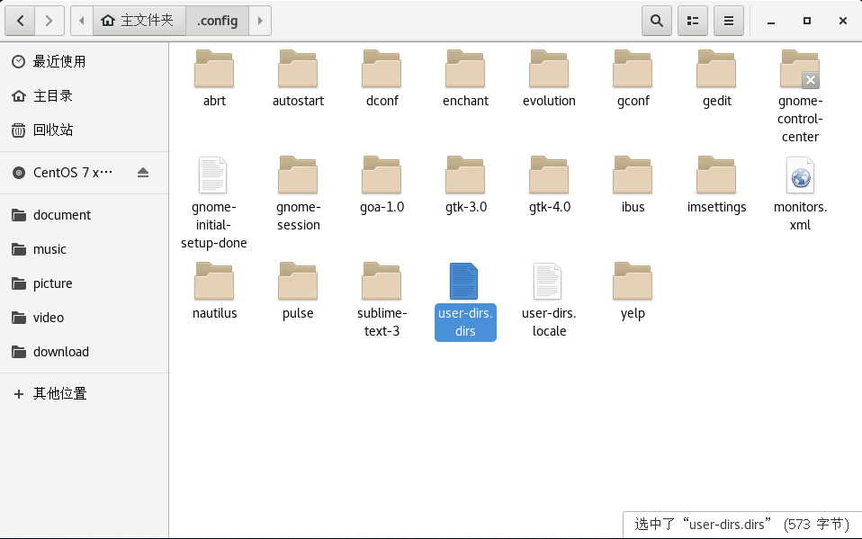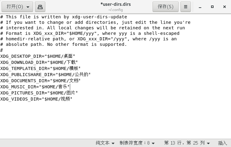3、找到【user-dirs.dirs】配置文件,以文本形式打开。